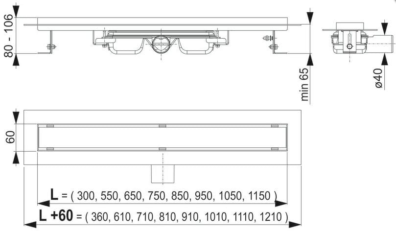 Odpływ z bezbarierowym przejściem! Konstrukcja odpływu liniowego powoduje, że odpływ można zastosować w łazienkach dla osób niepełnosprawnych i starszych. Odpływ nie stanowi barier w poruszaniu się (bezprogowy). Odpływ liniowy zaprojektowany jest do łazienek, w których z powodu ograniczeń w grubości podłogi niemożliwe jest zastosowanie odwodnienia o standardowej wysokości. Odpływ posiada regulowaną wysokość (od 65 mm).