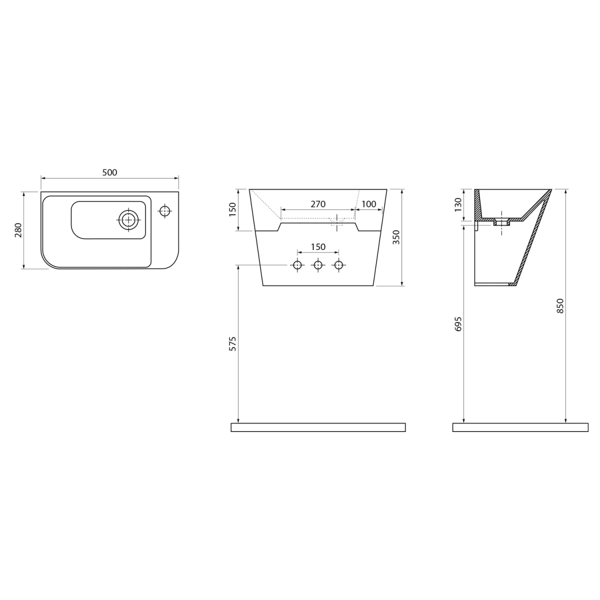 PRIMO umywalka ceramiczna 50x28cm, biały