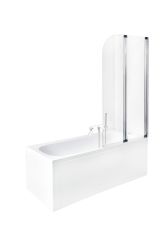 Parawan nawannowy 80,5x140 cm Besco Ambition 2, z przeźroczystego szkła, bez motywu. Parawan z chromowanymi profilami i przyścienną regulacją (funkcją niwelowania nierówności ściany). Model parawanu jest uniwersalny dzięki czemu może być zamontowany z prawej albo z lewej strony. Wykonany z bezpiecznego 5-milimetrowego szkła. Kaczucha.pl gwarancja jakości.
