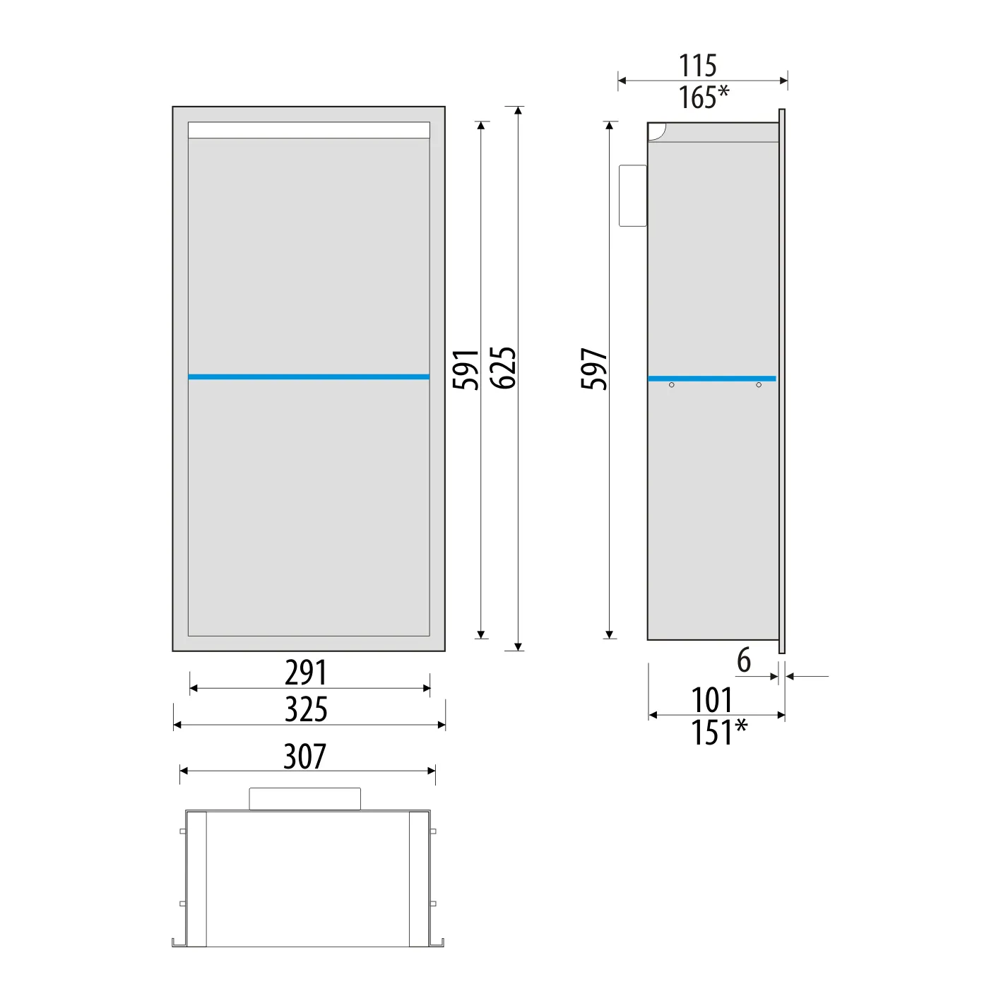 Półka łazienkowa wnękowa do zabudowy 32,5x59,7x10 cm ze stali nierdzewnej z oświetleniem LED kołnierz typu Bend MCJ B.PWNP LED 600/10