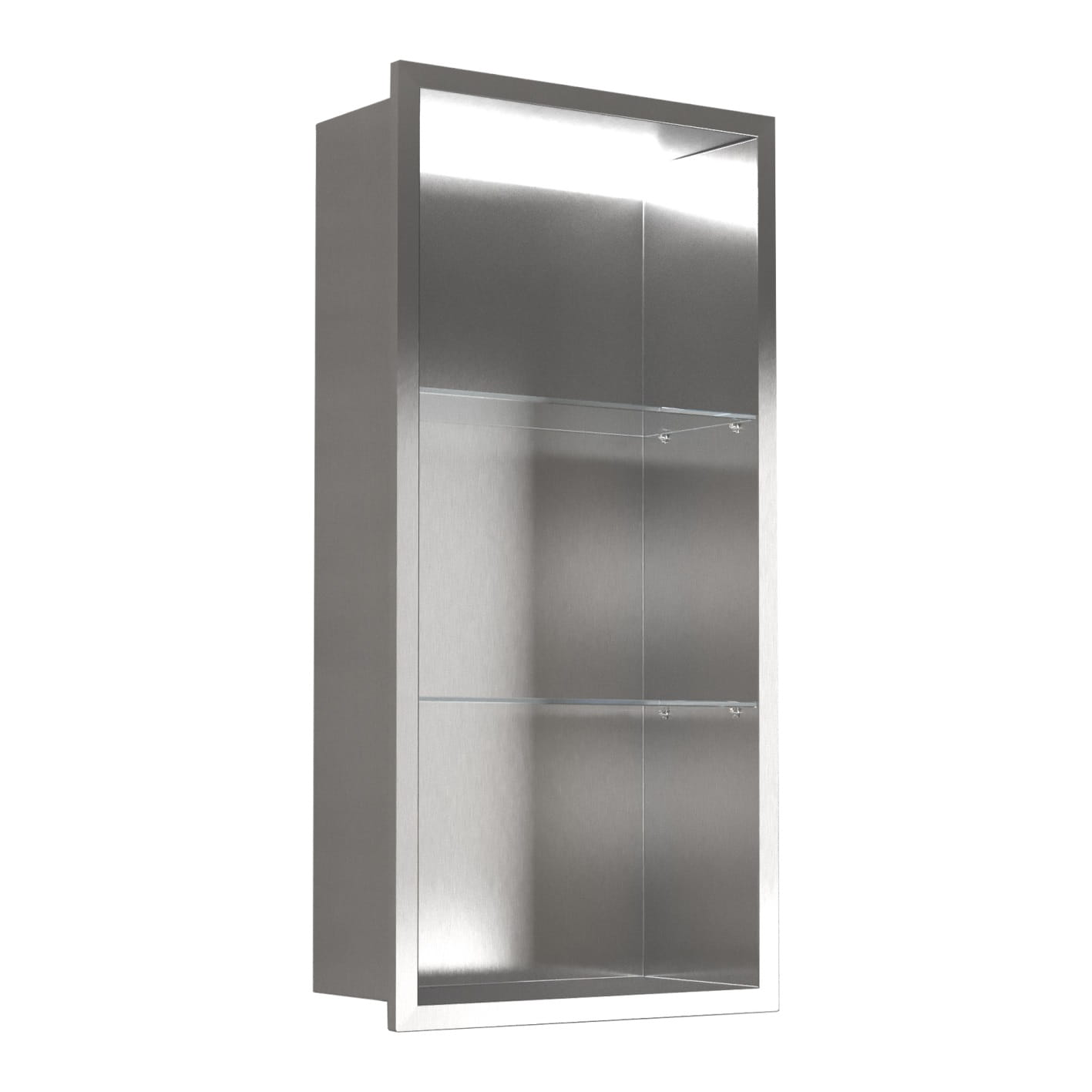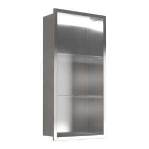 Półka łazienkowa wnękowa do zabudowy 32,5x32,5x15 cm ze stali nierdzewnej z oświetleniem LED kołnierz typu Bend MCJ B. PWN LED 300/15