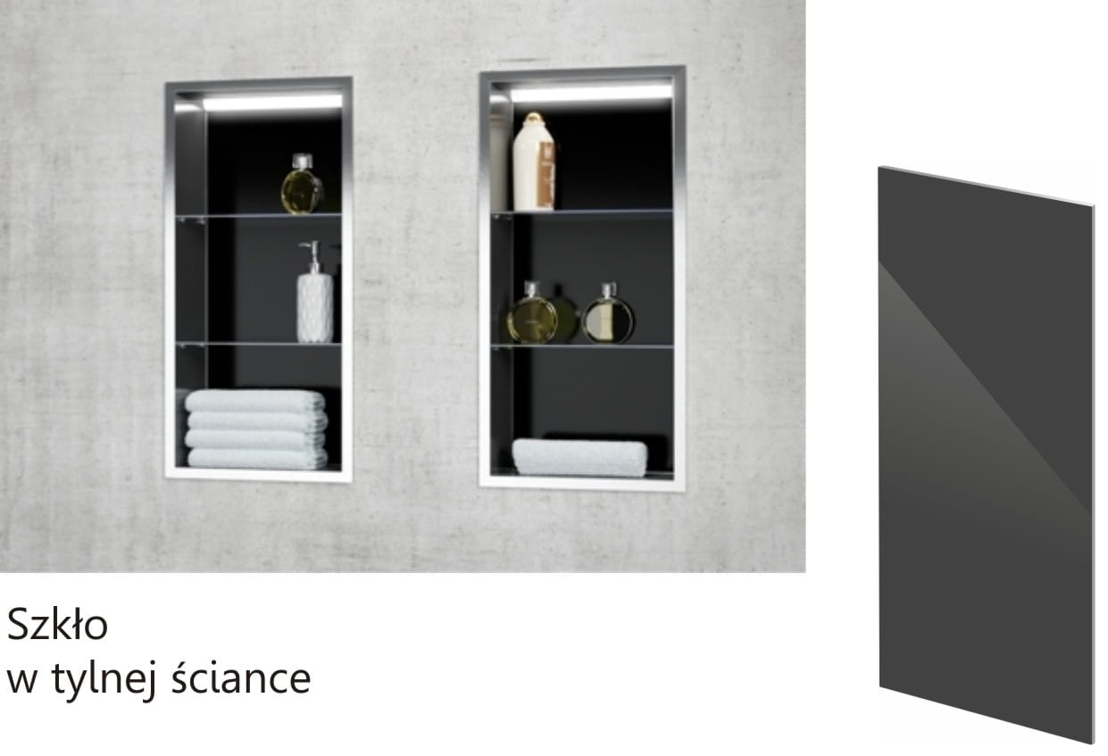 Półka łazienkowa wnękowa do zabudowy 32,5x92,5x15 cm MCJ to idealna propozycja dla miłośników przestrzeni i niekonwencjonalnych rozwiązań. Półka łazienkowa firmy MCJ przeznaczona jest do zabudowy w ścianie. Półka łazienkowa podtynkowa wykonana została ze stali nierdzewnej. Wysoka podtynkowa półka łazienkowa świetnie sprawdzi się jako miejsce do wyłożenia drobnych rzeczy np. kosmetyków. Świetnie się prezentuje i podkreśla nowoczesny charakter aranżacji. Dodatkowo istnieje możliwość zamontowania szkła w tylnej części oraz na dnie półki (za dopłatą). Półka do zabudowy posiada kołnierz typu Bend, co oznacza, że wystaje poza ścianę. Kaczucha.pl łazienki z gwarancją jakości.