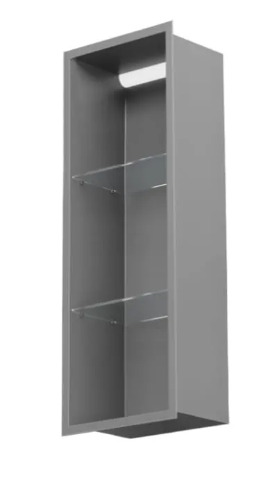 Półka łazienkowa wnękowa do zabudowy 32,5x92x15 cm ze stali nierdzewnej lakierowanej proszkowo z oświetleniem LED i szkłem w tylnej części MCJ F.PWNP LBL LED 900/15GR