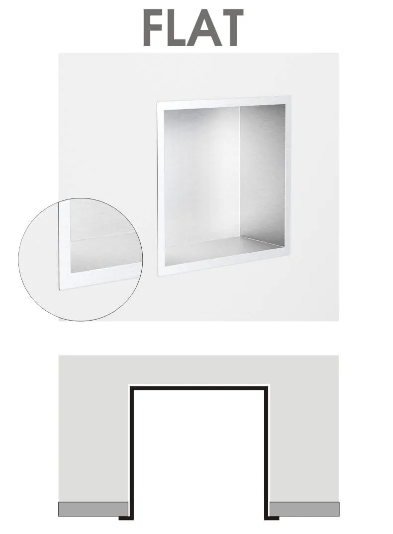 Półka łazienkowa wnękowa do zabudowy 32x32x15 cm ze stali nierdzewnej, lakierowanej na kolor biały, kołnierz typu Flat MCJ F.PWN LWH 300/15