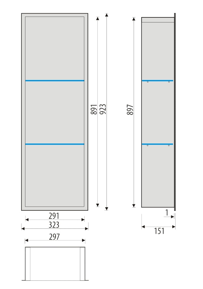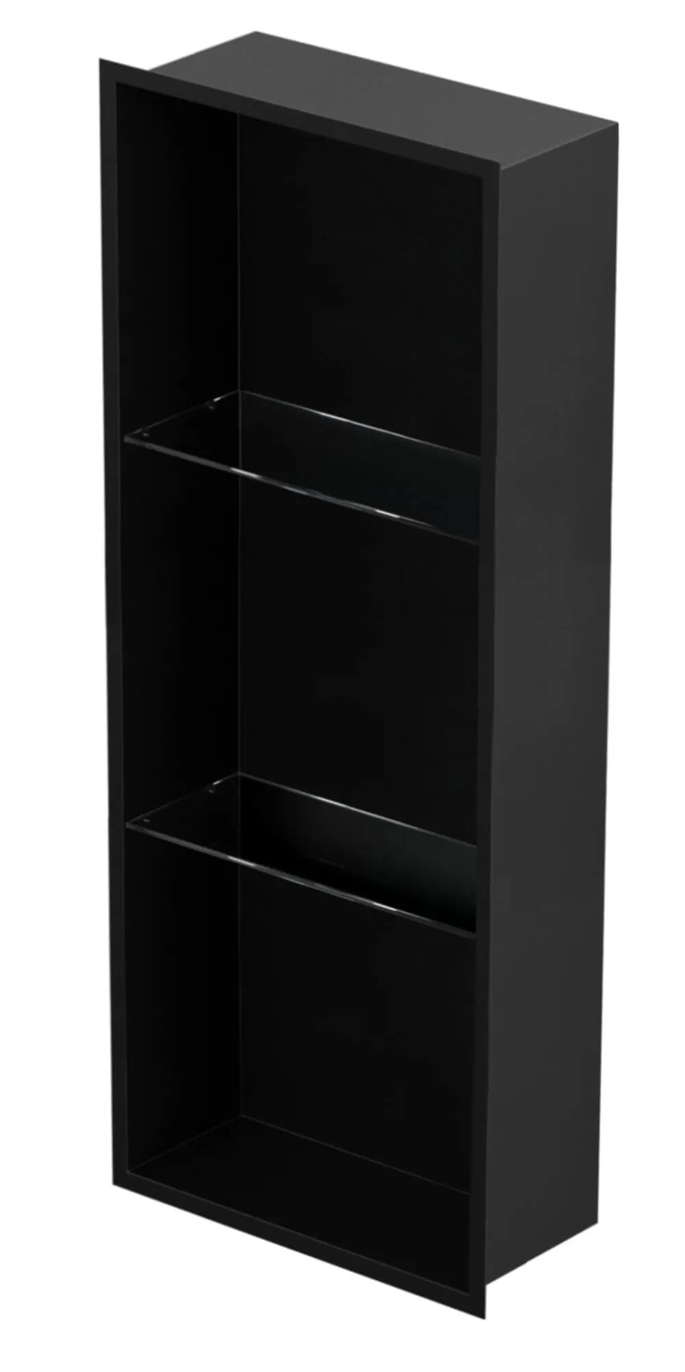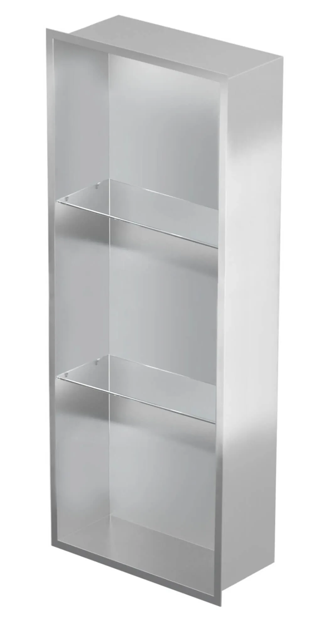 Półka łazienkowa wnękowa do zabudowy 32x92x15 cm ze stali nierdzewnej, lakierowanej na 3 kolory do wyboru, ze szklanymi półkami kołnierz typu Flat MCJ F.PWNP LWH 900/15
