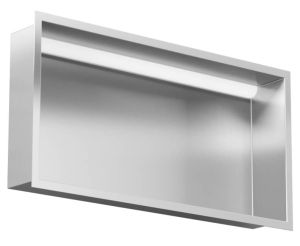 Półka łazienkowa wnękowa do zabudowy 62,3x32,3x10 cm ze stali nierdzewnej z oświetleniem LED, kołnierz typu Flat MCJ F.PWN 600/10 LED