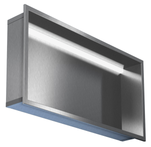Półka łazienkowa wnękowa do zabudowy 32,5x32,5x15 cm ze stali nierdzewnej z oświetleniem LED kołnierz typu Bend MCJ B. PWN LED 300/15