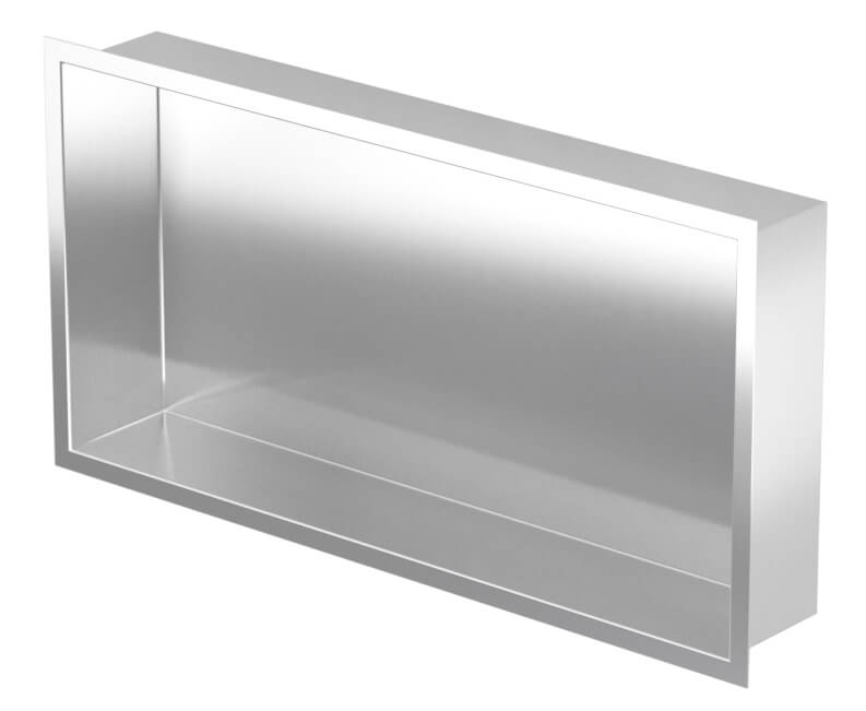 Półka łazienkowa wnękowa do zabudowy 62x32x15 cm ze stali nierdzewnej, lakierowanej na kolor biały, kołnierz typu Flat MCJ F.PWN LWH 600/15