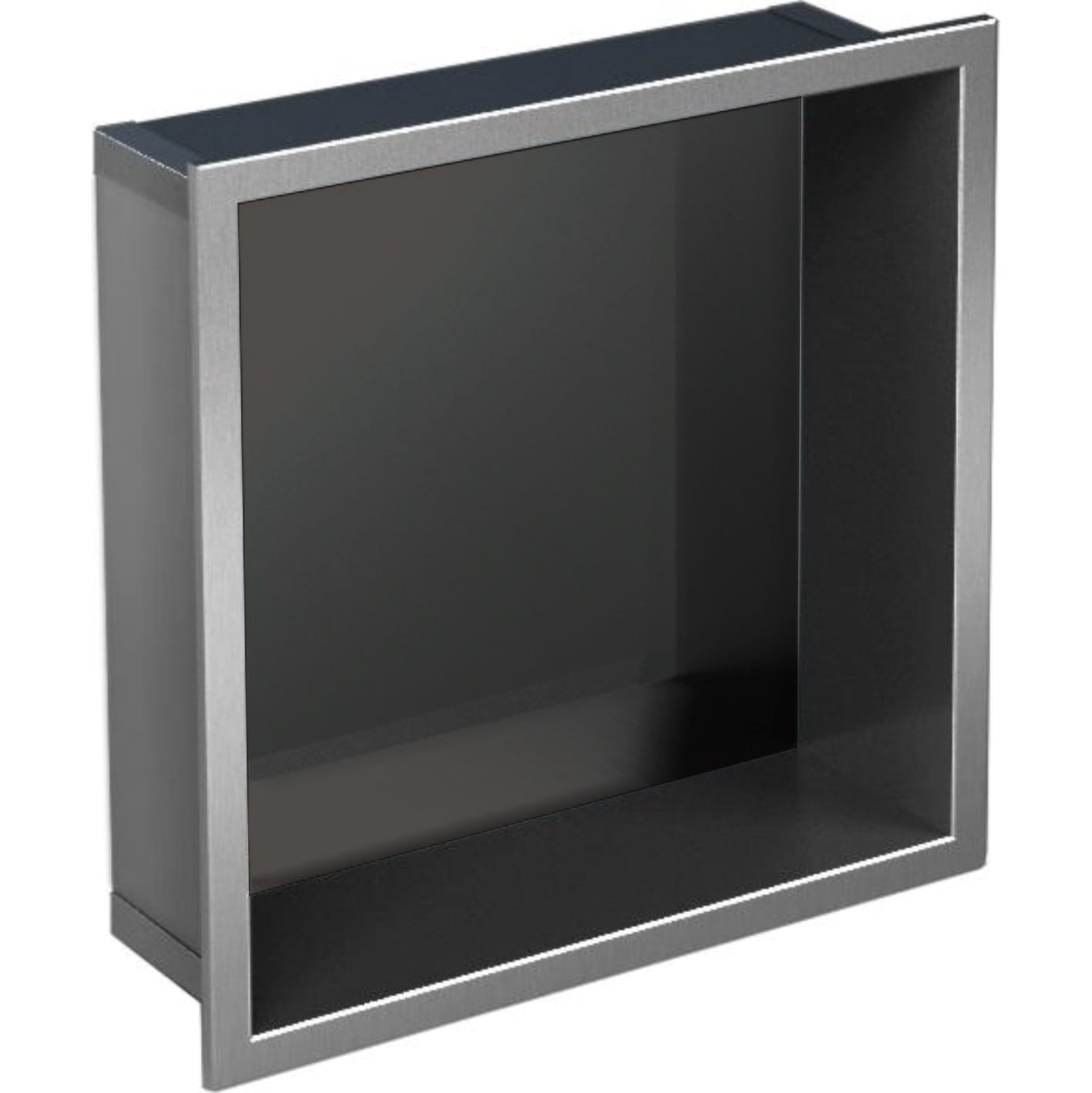 Półka łazienkowa wnękowa do zabudowy w ścianie 32,5x32,5x10 cm ze stali nierdzewnej lakierowanej na czarno, kołnierz typu Flat MCJ F.PWN LBL 300/10