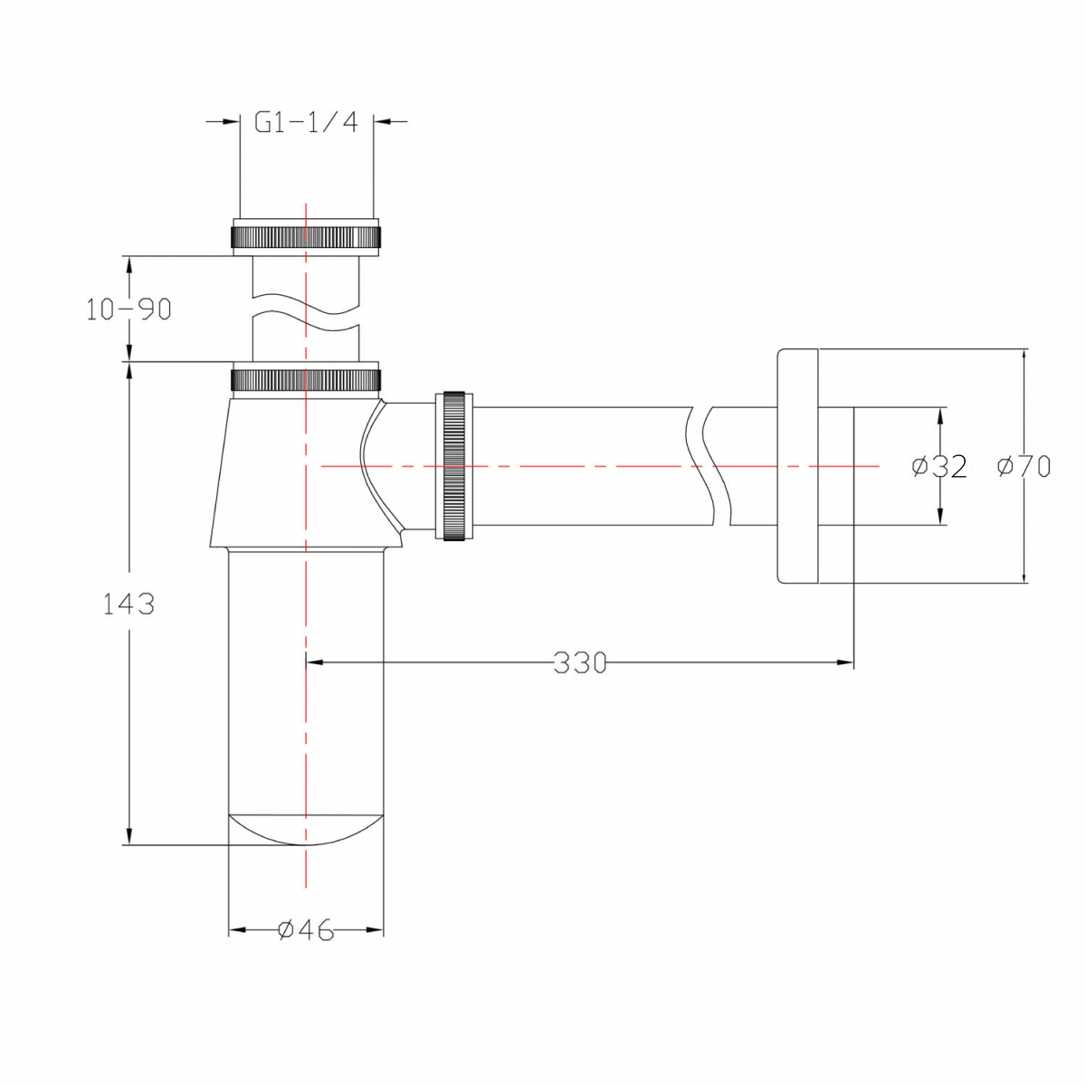Średnica odpływu: 32 mm