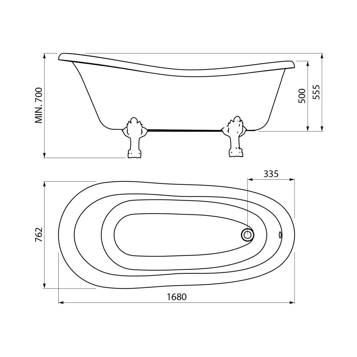 RETRO wolnostojąca wanna 168x76,2x70cm, biała, nogi brąz