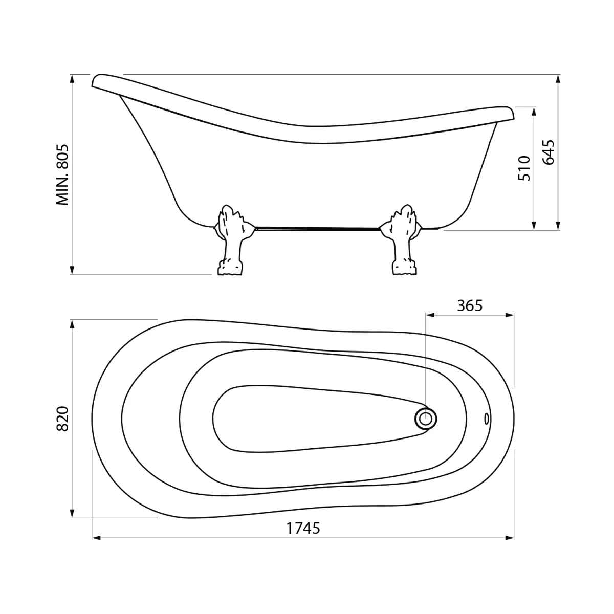 RETRO wolnostojąca wanna 174,5x82x80,5cm, biała, nogi białe
