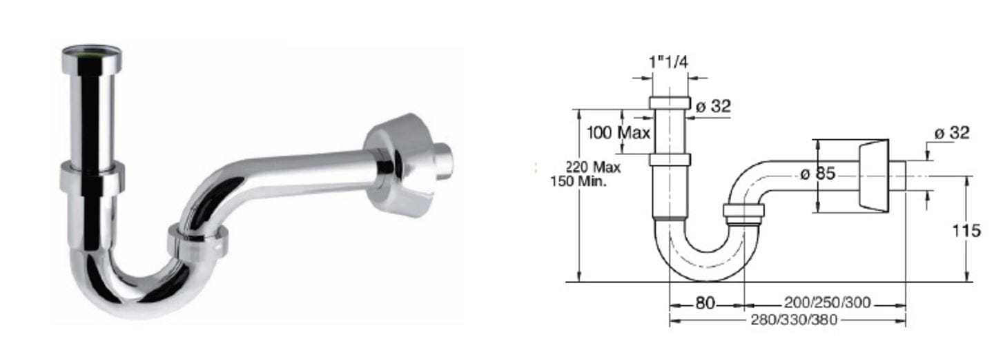 ROYAL FAMILY syfon umywalkowy 5/4", odpływ 32mm, chrom