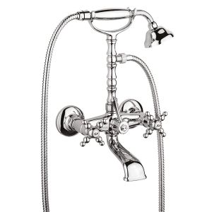 Retro bateria wannowa ścienna z wężem i słuchawką Giulini Parigi chrom 7300