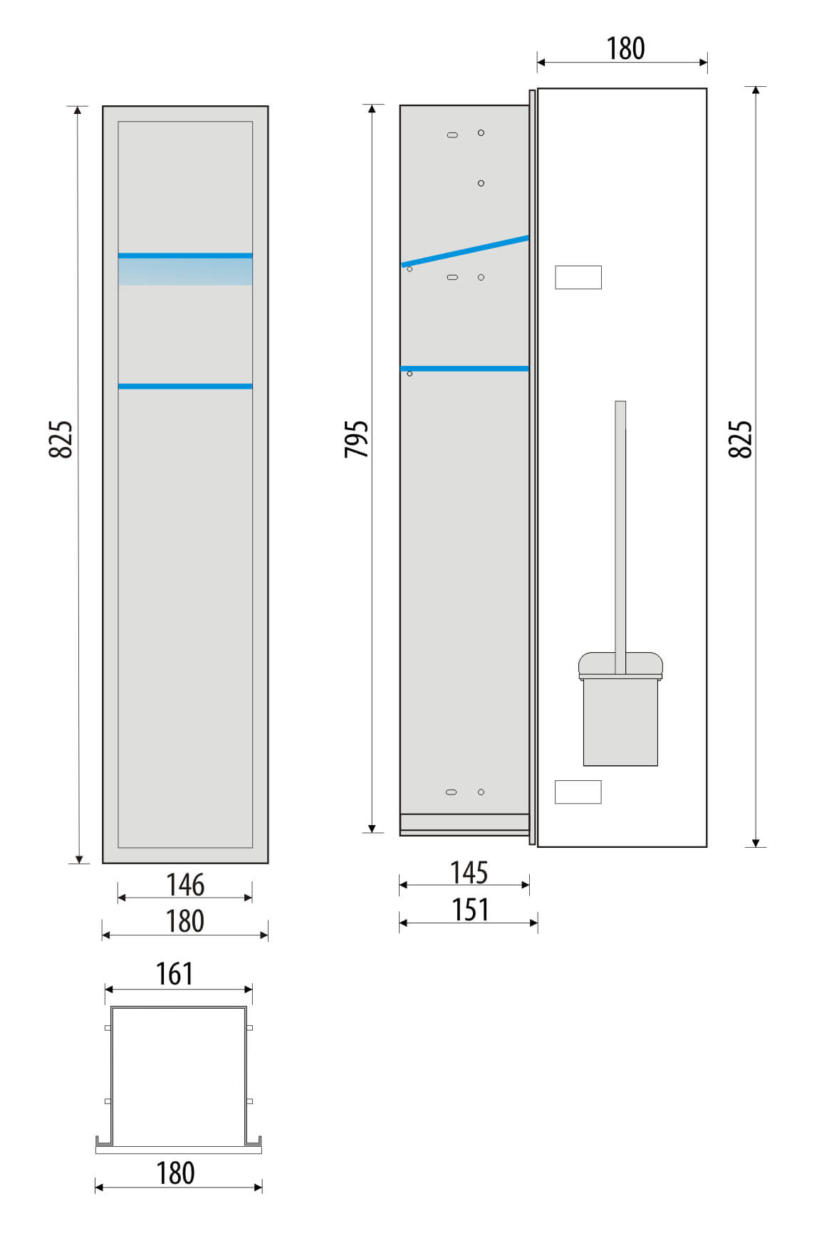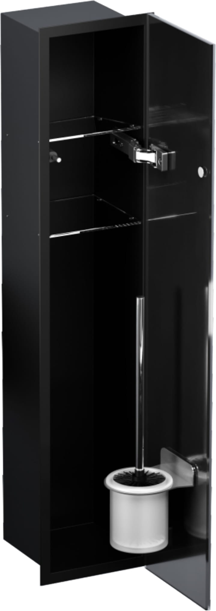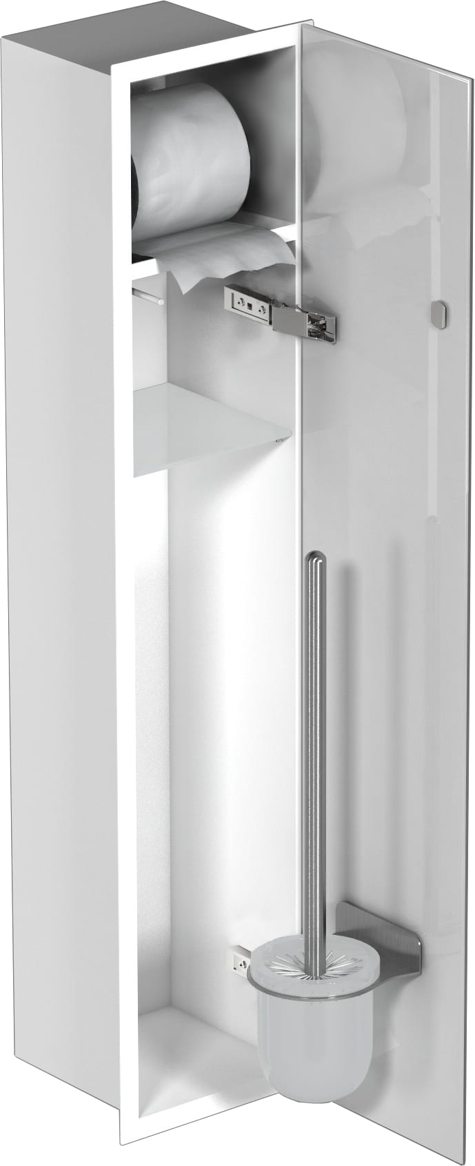 Schowek podtynkowy WC do szczotki i papieru toaletowego, do zabudowy w ścianie 18x82,5x15 cm kołnierz typu Flat MCJ biały połysk białe szkło F.PWAD LWH WC 800