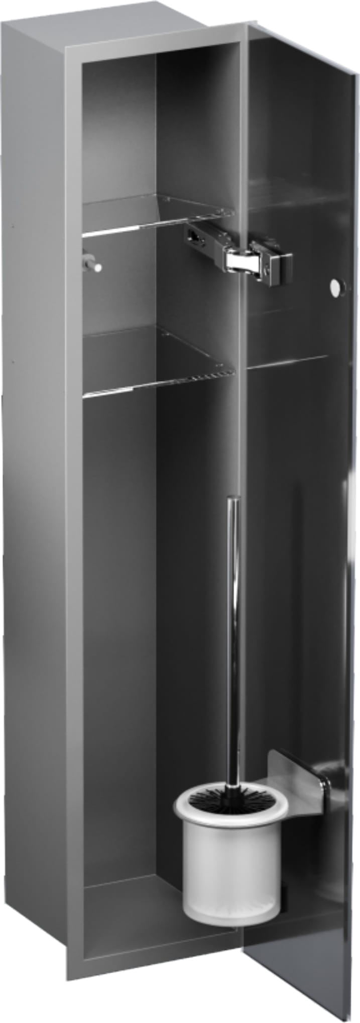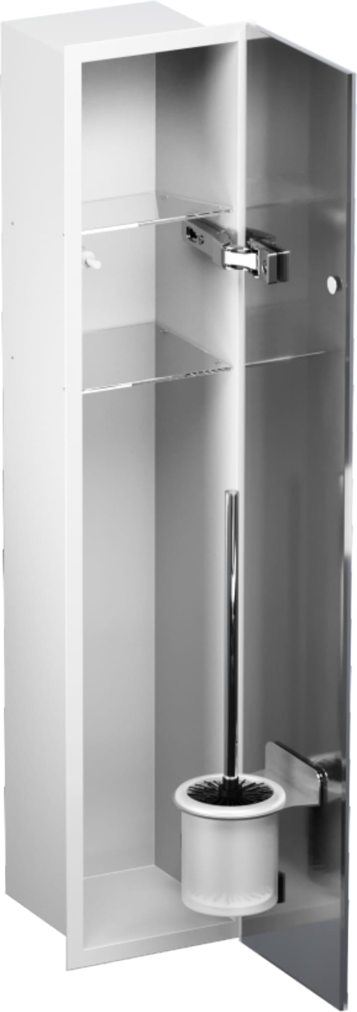 Schowek podtynkowy WC do szczotki i papieru toaletowego, do zabudowy w ścianie 18x82,5x15 cm kołnierz typu Flat MCJ stal nierdzewna białe szkło F.PWAD WC 800