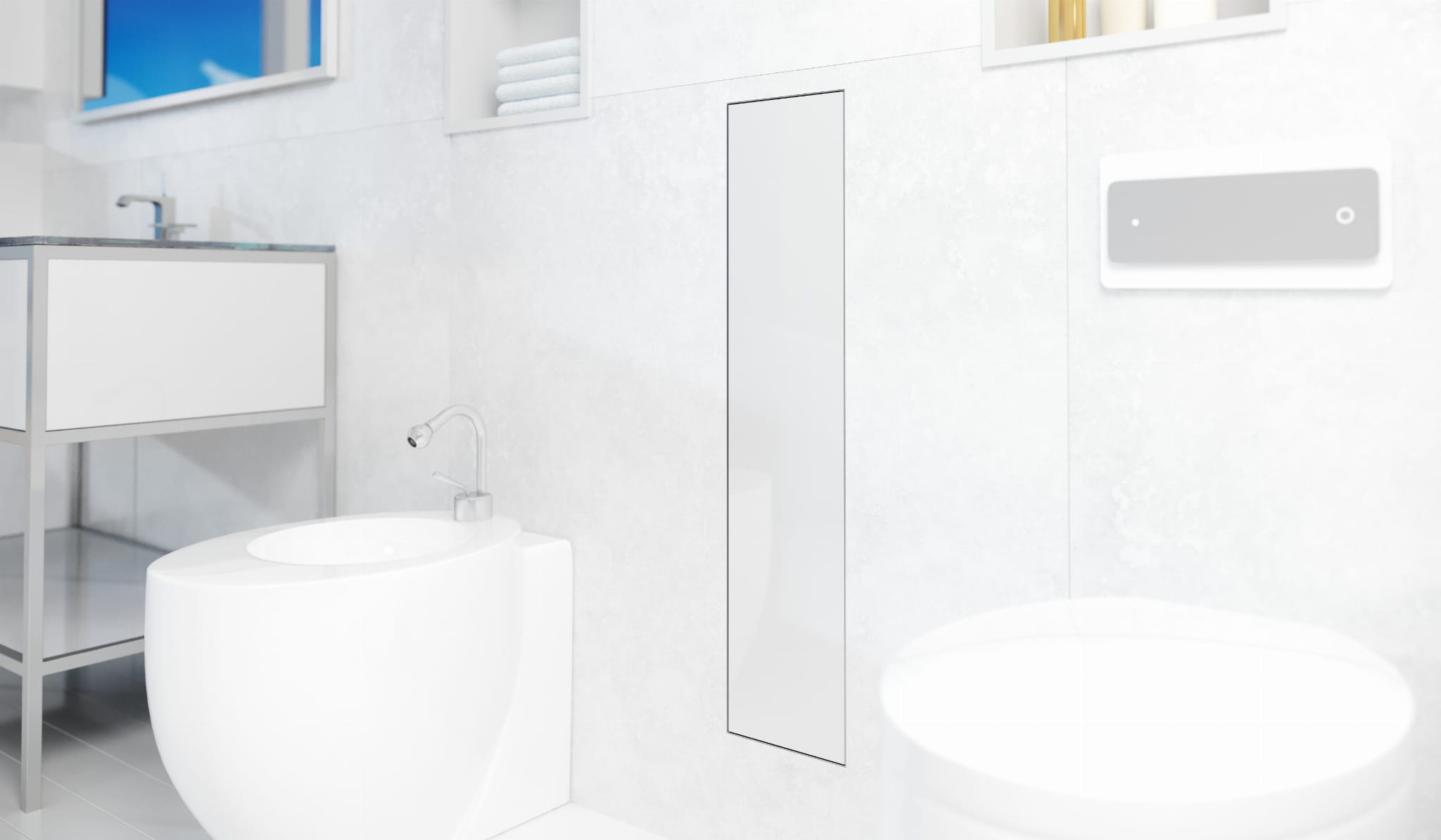 Nowoczesny design. Białe szkło w połączeniu z wykończeniem ze stali nierdzewnej sprawia, że schowek WC doskonale komponuje się z minimalistycznymi i nowoczesnymi aranżacjami łazienek.