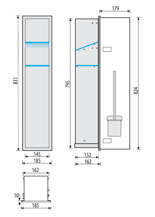 Schowek podtynkowy WC o wymiarach 18x83x16 cm to eleganckie i funkcjonalne rozwiązanie dla nowoczesnych łazienek. Wykonany z trwałej stali nierdzewnej i wykończony drzwiami z laminowanego, białego szkła (kolor można wybrać w opcjach), doskonale wpisuje się w minimalistyczne wnętrza, zapewniając estetyczne i praktyczne przechowywanie szczotki WC oraz papieru toaletowego. W środku półki wykonane są z bezpiecznego szkła. Jedna wolna półeczka do dowolnego zagospodarowania. Dzięki zastosowaniu kołnierza typu Zero, schowek podtynkowy WC może być w pełni zlicowany ze ścianą, co pozwala na harmonijną integrację z aranżacją wnętrza.