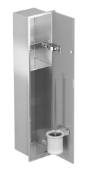 Schowek podtynkowy WC do szczotki i papieru toaletowego, do zabudowy w ścianie 18x83x16 cm kołnierz typu Zero stal nierdzewna szkło białe MCJ Z.PWAD WC 800