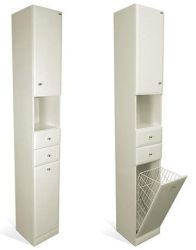 Słupek łazienkowy z MDF 30x31x200 cm wysoki Lawabo S4 30 z drzwiczkami, szufladami, wnęką i koszem