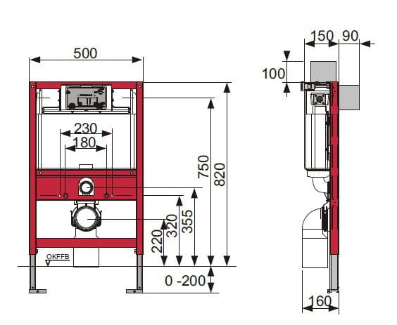 TECE profil wysokość 820 mm. Jest to uniwersalny, niski stelaż podtynkowy do WC ze spłuczką podtynkową uruchomianą z góry lub z przodu. Szczególnie przydatny w łazienkach o niskiej zabudowie punktu WC np. pod parapetem pod oknem. Służy do zabudowy w systemie TECE profil lub zabudowy indywidualnej, na sucho. Do stelaża 9.300.001 pasują wszystkie przyciski spłukujące proponowane przez TECE, przycisk należy dokupić osobno, przyciski znajdziesz poniżej w galerii produktów powiązanych, bądź na liście naszych kategorii w dziale: stelaże podtynkowe -> przyciski spłukujące. Stelaż dostarczymy bezpiecznie zapakowany, kompletny i gotowy do montażu, rysunki techniczne dołączone do stelaża ułatwią zrozumienie działania i pomogą przy montażu. Regulowane stopki pomogą dopasować stelaż do wysokości mocowania ceramiki, a w przypadku pytań lub wątpliwości jesteśmy do twojej dyspozycji Kaczucha.pl funkcjonalność w łazience.