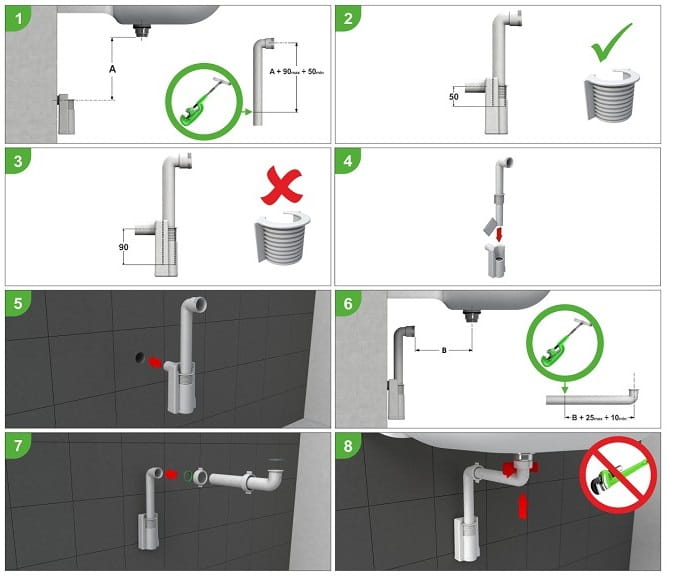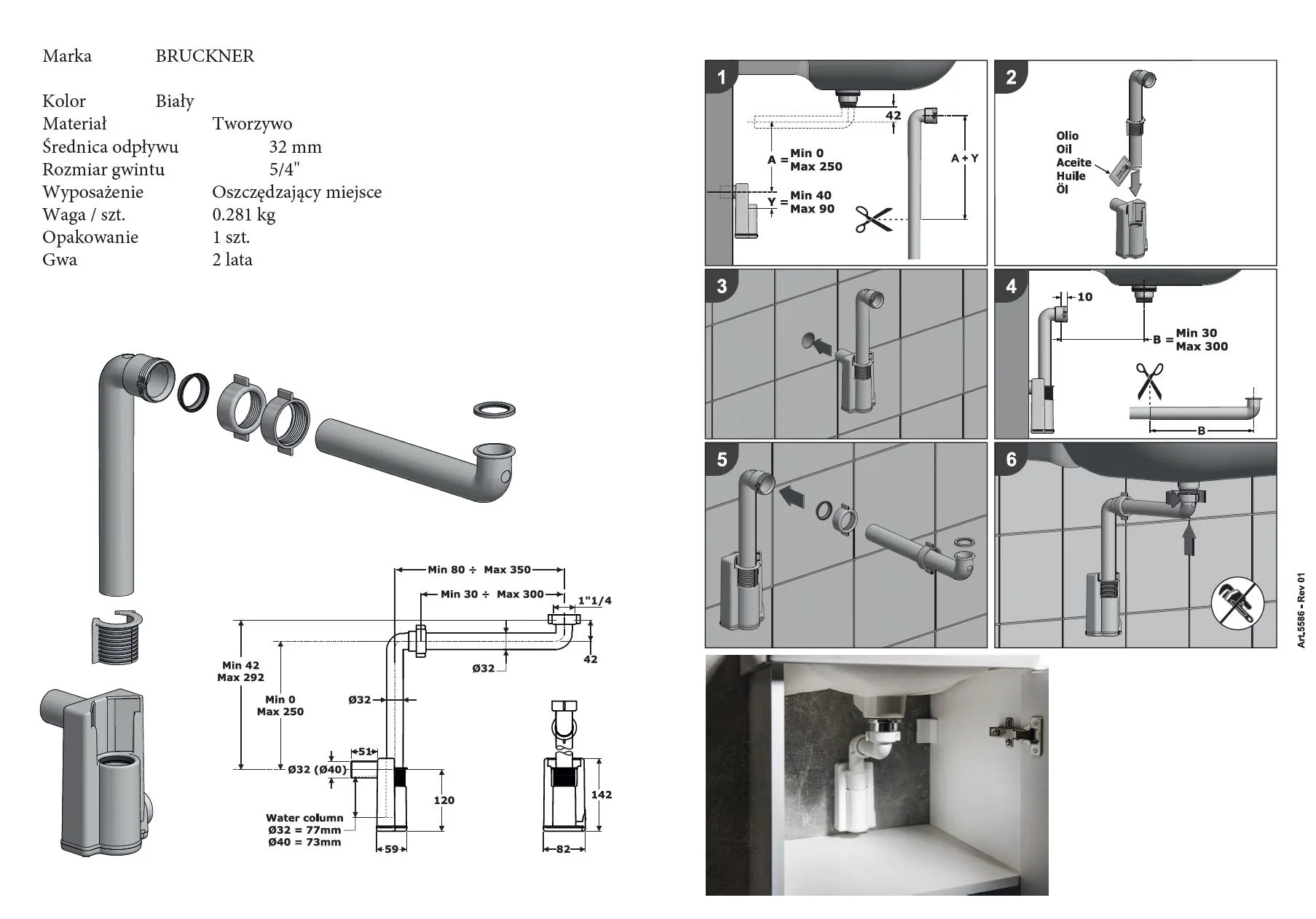 Regulacja wysokości i długości. Syfon posiada możliwość regulacji wysokości i długości, dzięki czemu pozwala oszczędzić miejsce pod umywalką lub bidetem.