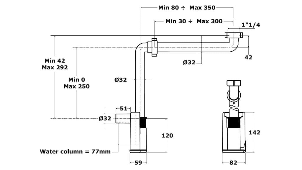 Syfon umywalkowy oszczędzający miejsce do montażu w szafce z regulowaną wysokością i długością Bonomini 2500IS32B0