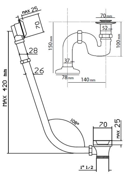 klimat retro i spełniając jednocześnie funkcję syfonu z przelewem. Warto zaznaczyć możliwość regulacji długości rury przelewowej. Syfon występuje w kolorze chrom i stare złoto.