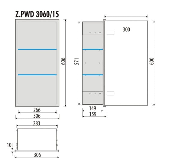 Szafka łazienkowa do zabudowy 30x60x16 cm MCJ stal nierdzewna szkło białe kołnierz typu Zero Z.PWD 3060/15