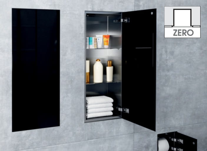 Szafka łazienkowa do zabudowy 30x60x16 cm MCJ to idealna propozycja dla nowoczesnych łazienek. Zgrabna szafka łazienkowa przeznaczona do zabudowy, solidnie wykonana, ze stali nierdzewnej szczotkowanej. Szafka do zabudowy zamykana jest na drzwiczki w wysokim połysku wykonane z bezpiecznego i laminowanego szkła. Rodzaj szkła, kolor oraz stronę drzwiczek należy wybrać w opcjach. Drzwiczki wyposażone w wysokiej klasy zawiasy Blum Cristallo. Szafka łazienkowa do zabudowy wyposażona została w dwie półki wykonane z bezpiecznej grubości szkła. Szafka świetnie się prezentuje i podkreśla nowoczesność aranżacji. Szafka pochodzi z serii Zero co oznacza, że szafka zlicowana jest ze ścianą i nie wystaje poza ścianę. Kaczucha.pl łazienki z gwarancją jakości.