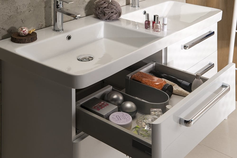 Szuflady naszych mebli wyposażone są w prowadnice z systemem powolnego i cichego domyku. Wystarczy jedno pchnięcie i szuflada domknie się sama, cicho i delikatnie.