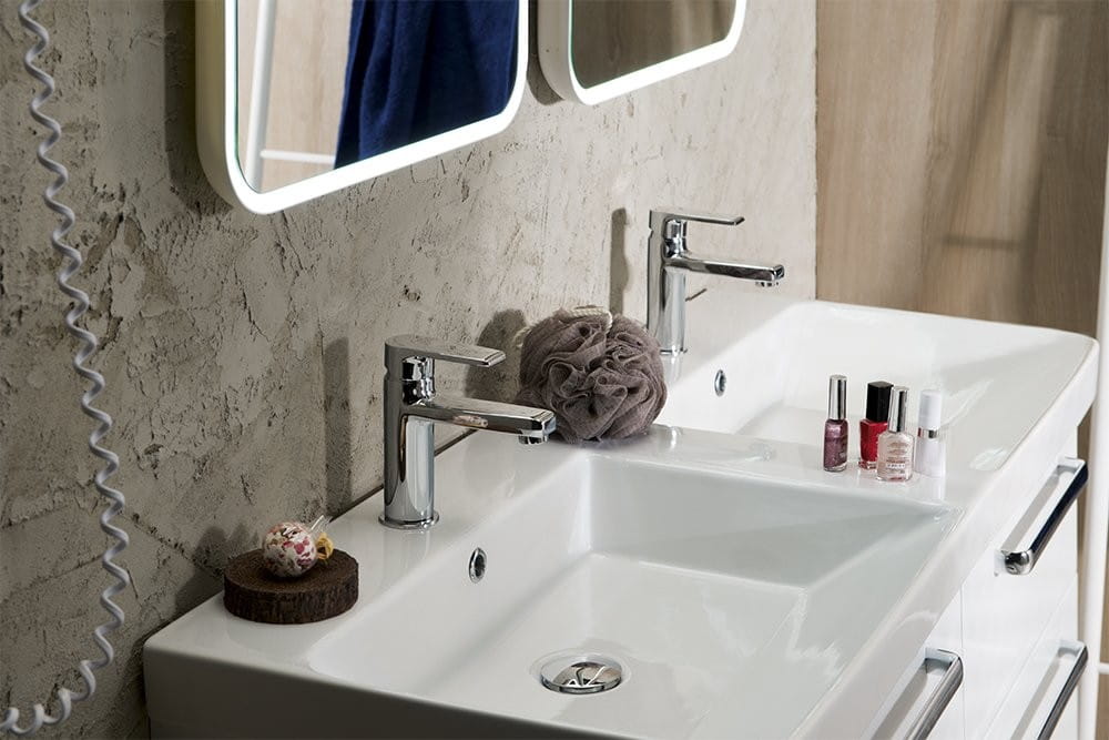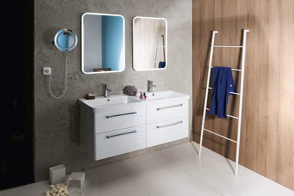 THEIA 120 zestaw łazienkowy, umywalka podwójna, biały