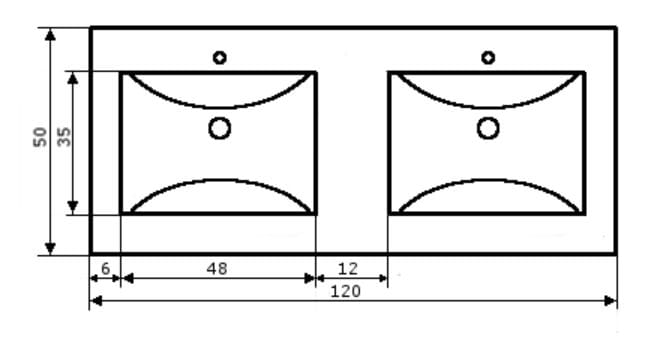 Umywalka podwójna konglomeratowa 120x50 cm na szafkę Soft 120/2