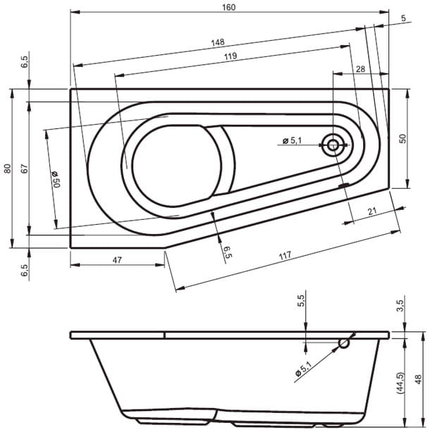Wanna asymetryczna 150x80 cm do zabudowy Riho Delta to wysokiej jakości wanna w kolorze biały połysk, wykonana z akrylu odpornego na zarysowania oraz przebarwienia. Wanna akrylowa wyróżnia się zgrabną, asymetryczną formą. Przelew i odpływ w wannie zostały umiejscowione po boku. Wanna asymetryczna przeznaczona jest do zabudowy. Producent oferuje również obudowę składającą się z panelu frontowego. Do wanny można dokupić szereg akcesoriów, dzięki którym kąpiel w wannie będzie bardzo przyjemna. Wanna sprzedawana jest w wersji lewej. W opcjach można wybrać również prawą. Nóżki i syfon do kupienia osobno. Kaczucha.pl funkcjonalność i świetna forma!