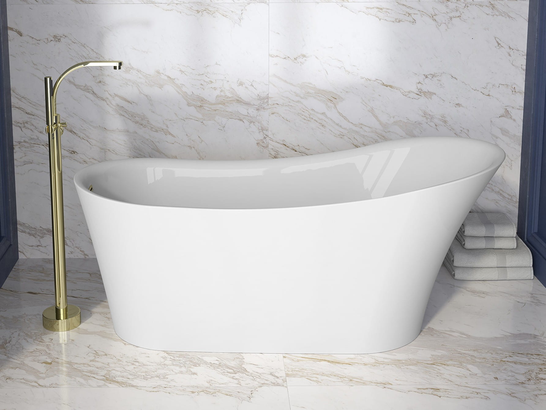 Wanna wolnostojąca akrylowa 170x72 cm z maskownicą syfonu i przelewem w kolorze złotym Besco Calima #WAS-170-CZL biały połysk