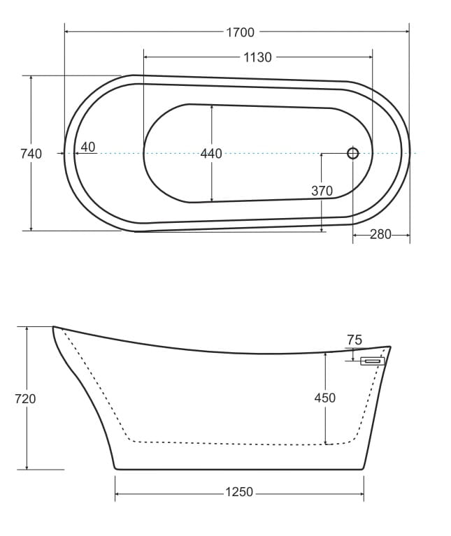 Wanna wolnostojąca 170x72 cm z graftiową maskownicą syfonu i przelewem Besco Calima #WAS-170-CGR biały połysk