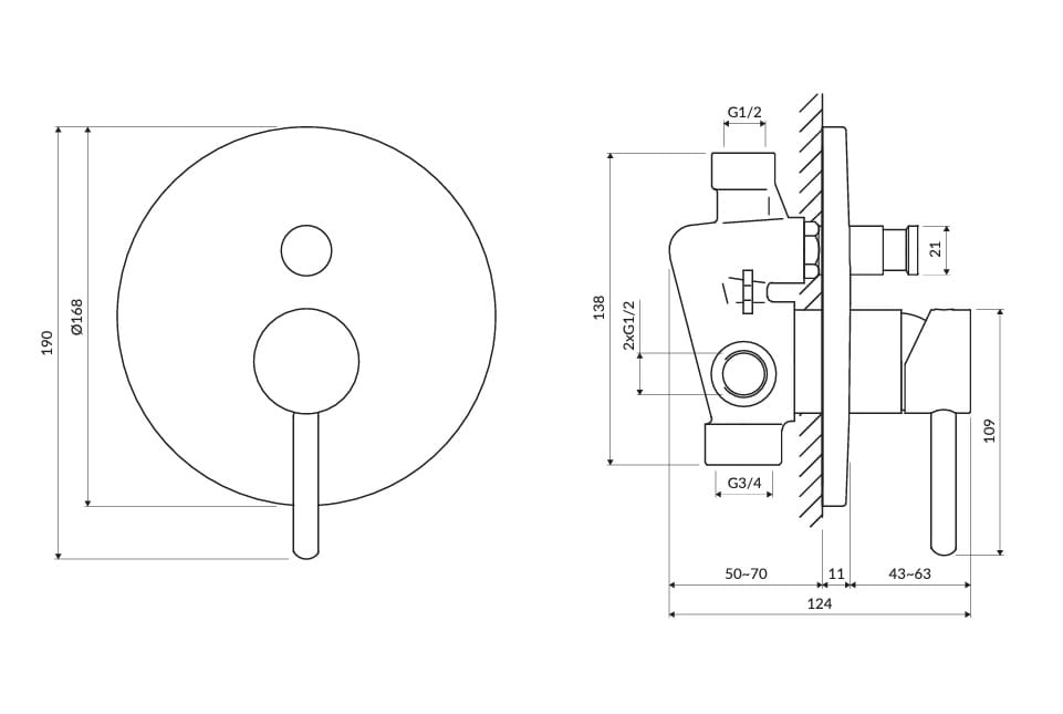 - dwa wejścia (na wodę ciepłą i zimną): 1/2”, dwa wyjścia wody zmieszanej: 1/2” i 3/4”