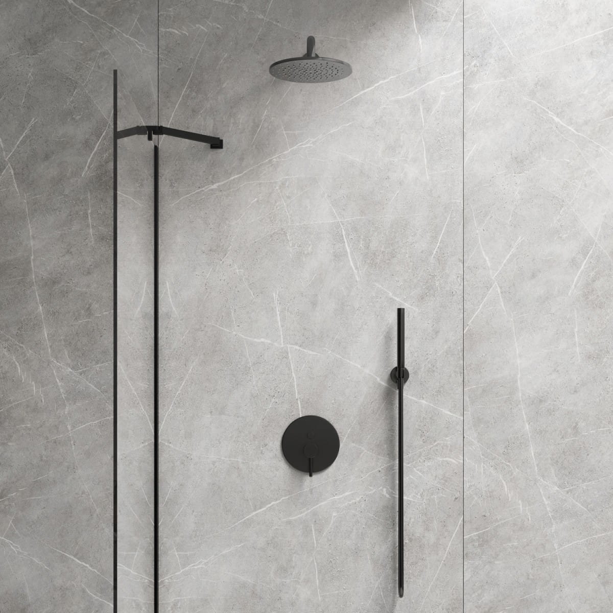 Czarny zestaw natryskowy podtynkowy z deszczownicą 22 cm Paffoni Light ZDUP094NO+2LIG011NO