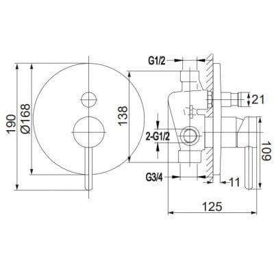 - dwa wejścia (na wodę ciepłą i zimną): 1/2”, dwa wyjścia wody zmieszanej: 1/2” i 3/4”