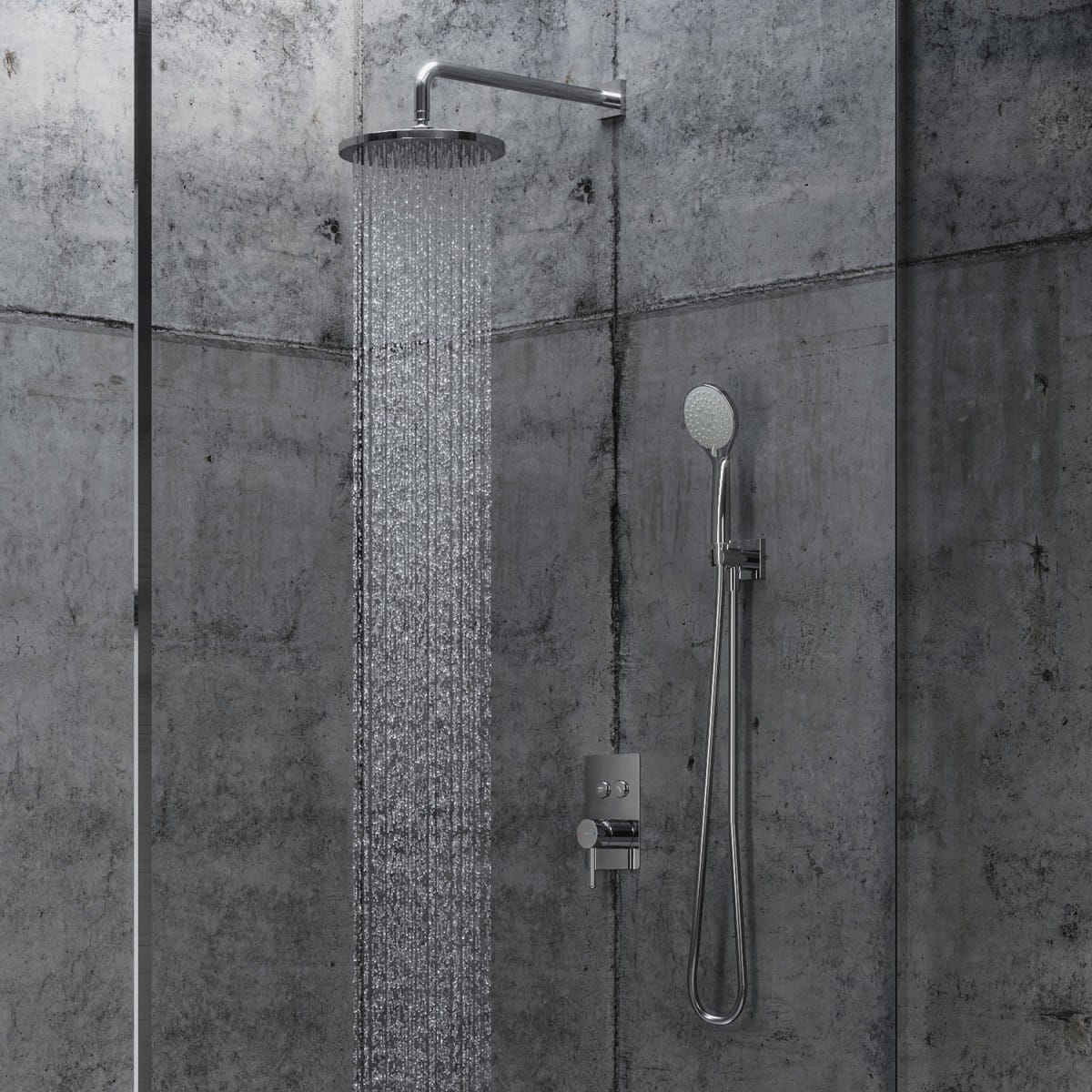 Zestaw prysznicowy Retro podtynkowy z deszczownicą, wylewką, słuchawką prysznicową i dwiema bateriami podtynkowymi Emmevi Laguna LAG015ZSCW1A chrom