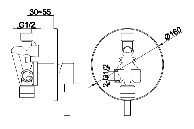 KohlmanBateria bidetowa 15 cm z korkiem, czarna Kohlman Roxin QB130RB