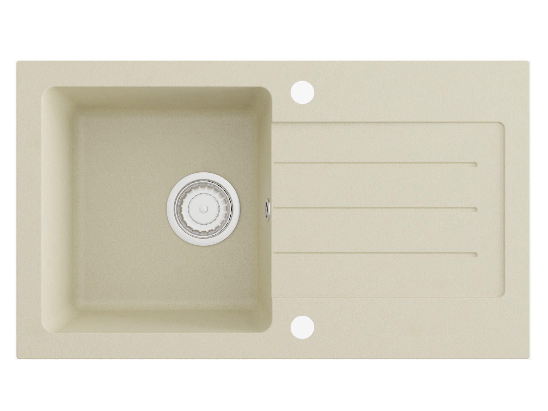 Zlew granitowy 77x45 cm z jedną komorą i ociekaczem Darfor. Zlewozmywak z granitu wyróżnia się nowoczesnym, minimalistycznym stylem. Zlew wyposażony jest w jedną komorę oraz praktyczny ociekacz. Zlew jest świetnym połączeniem designu z funkcjonalnością. Granitowe zlewozmywaki, zwłaszcza w delikatnym, jaśminowym kolorze, stanowią praktyczne i subtelne uzupełnienie kuchennej aranżacji.