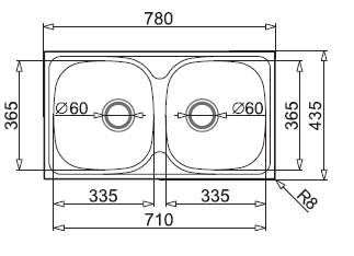 Zlewozmywak dwukomorowy 78x43,5 cm Pyramis 2B E78 100125101