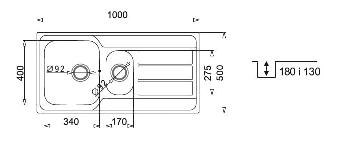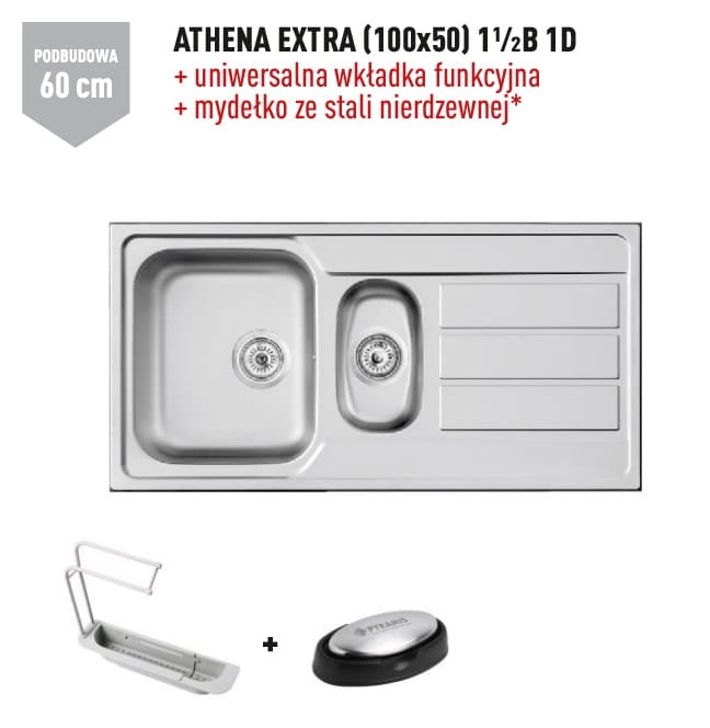 Zlewozmywak dwukomorowy stalowy 100x50 cm 1,5B 1D Pyramis Athena Extra 107163601 polerowany, gładki