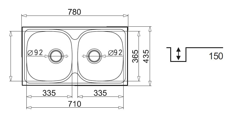 Zlewozmywak dwukomorowy stalowy 78x43,5 cm 2B Pyramis E78 100138801 polerowany, gładki