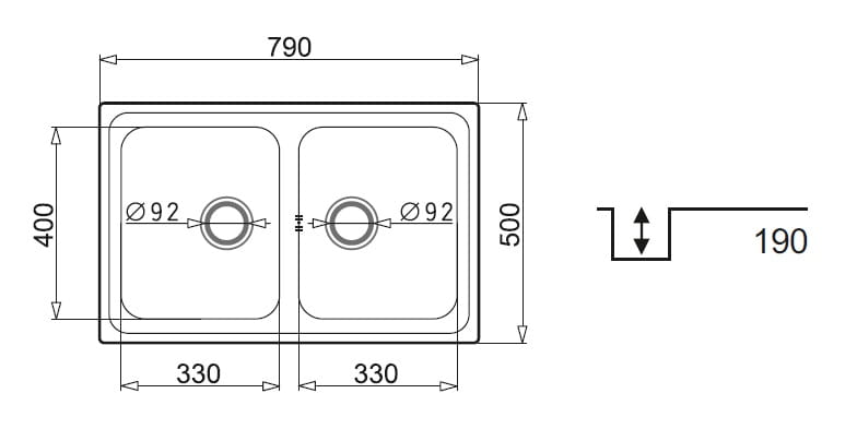 Zlewozmywak dwukomorowy stalowy 79x50 cm 2B Pyramis Alea 107157601 gładki polerowany