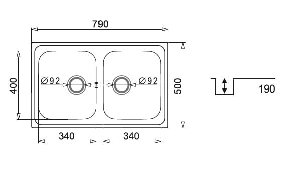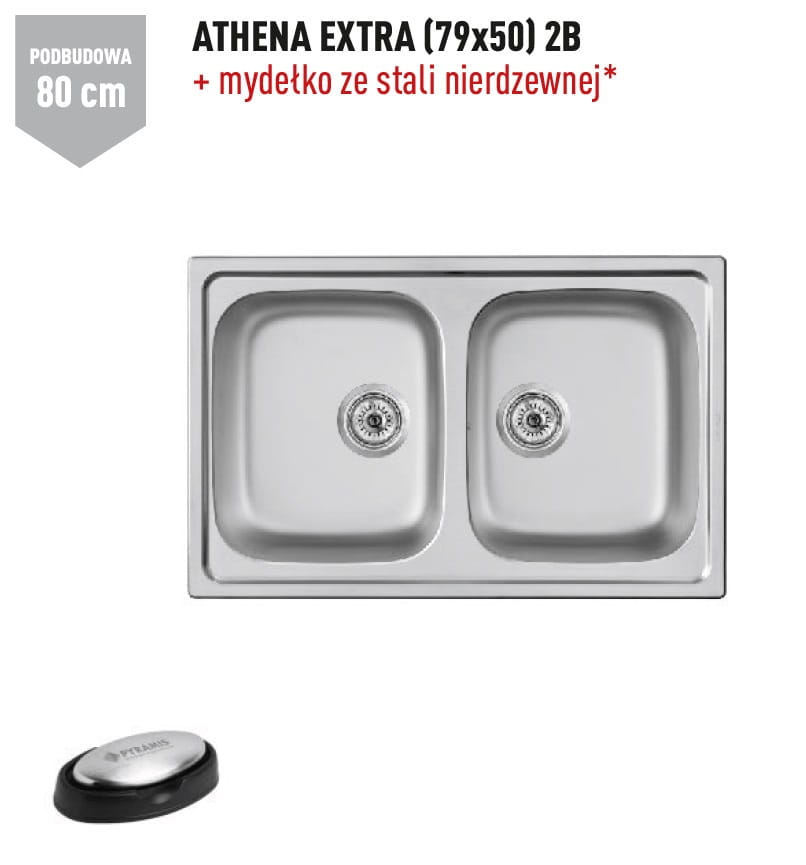 Zlewozmywak dwukomorowy stalowy 79x50 cm 2B Pyramis Athena Extra 107165101 polerowany, gładki
