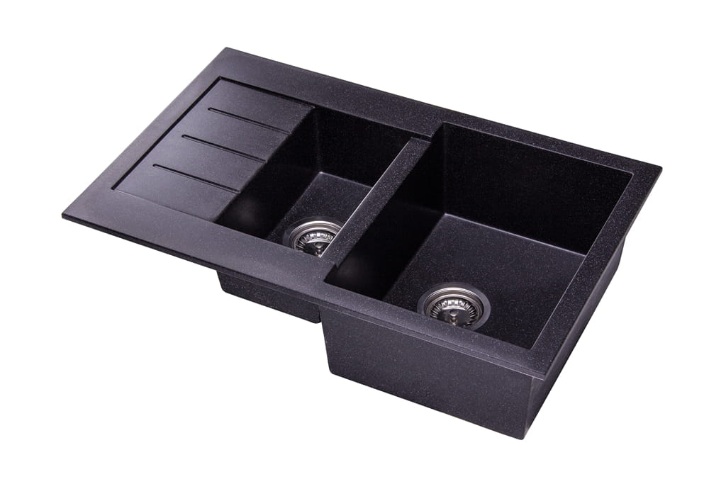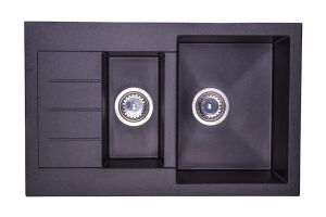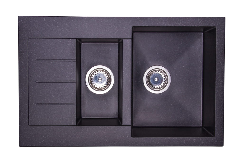 Zlewozmywak granitowy 1,5-komorowy 77x48 cm Darfor DG013 czarny nakrapiany
