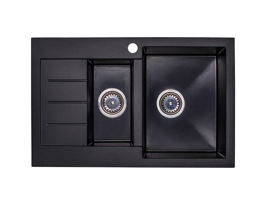 Zlewozmywak granitowy 1,5-komorowy 77x48 cm Darfor DG013+SR426 czarny