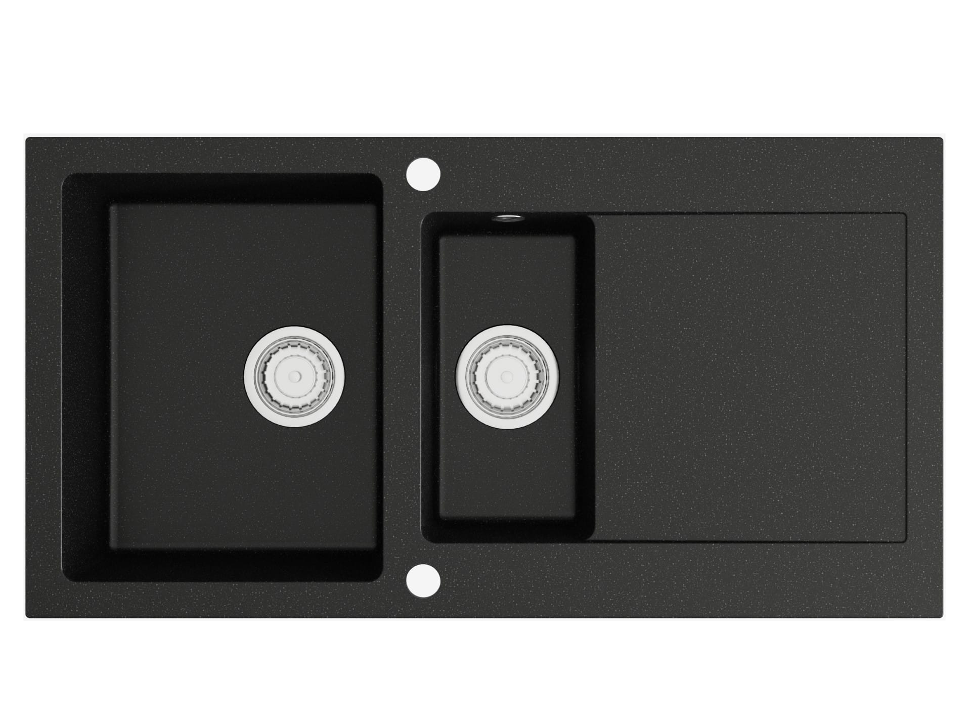 Wyposażenie: syfon przyścienny w wersji podstawowej. W komplecie ze zlewem występuje syfon ręczny w kolorze chrom. W opcjach można wybrać syfon automatyczny (za dopłatą) w jednym z trzech kolorów do wyboru: chrom, czarny, złoty. Przy wyborze wariantu automatycznego niezbędny jest dodatkowy otwór na pokrętło do sterowania sitem.
